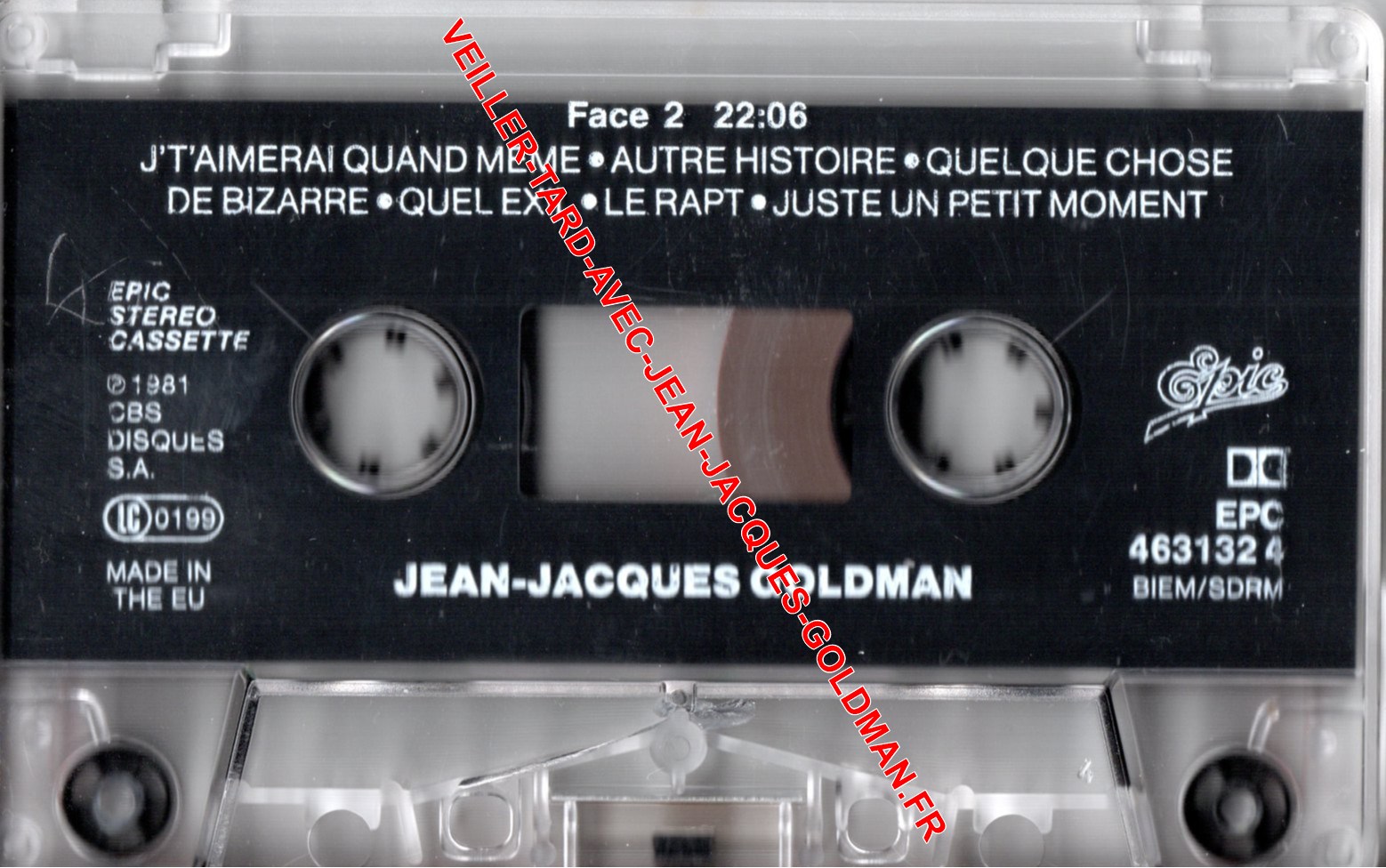 FACE 2 - EPIC STEREO CASSETTE - P 1981 CBS DISQUES S.A. - LC 0199 - MADE IN THE EU / FACE 2 - 22:06 - J'T'AIMERAI QUAND MEME - AUTRE HISTOIRE - QUELQUE CHOSE DE BIZARRE - QUEL EXIL - LE RAPT - JUSTE UN PETIT MOMENT - JEAN-JACQUES GOLDMAN / EPIC - EPC 463132 4 BIEM SDRM