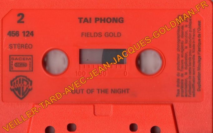 FACE 2 - 456 124 - STEREO - SACEM - SACD - SDRM - SGDL - WB RECORDS / TAÏ PHONG - 1) FIELDS GOLD - 2) OUT OF THE NIGHT - TOUS DROITS DU PRODUCTEUR PHONOGRAPHIQUE ET DU PROPRIETAIRE DE L'OEUVRE ENREGISTREE RESERVES. SAUF AUTORISATION, LA DUPLICATION. LA LOCATION, LE PRET, L'UTILISATIION DE CETTE BANDE POUR EXCECUTION PUBLIQUEET RADIODIFFUSION SONT INTERDITS. MADE IN FRANCE. DUPLICATION MOULAGE PLASTIQUE DE L'OUEST