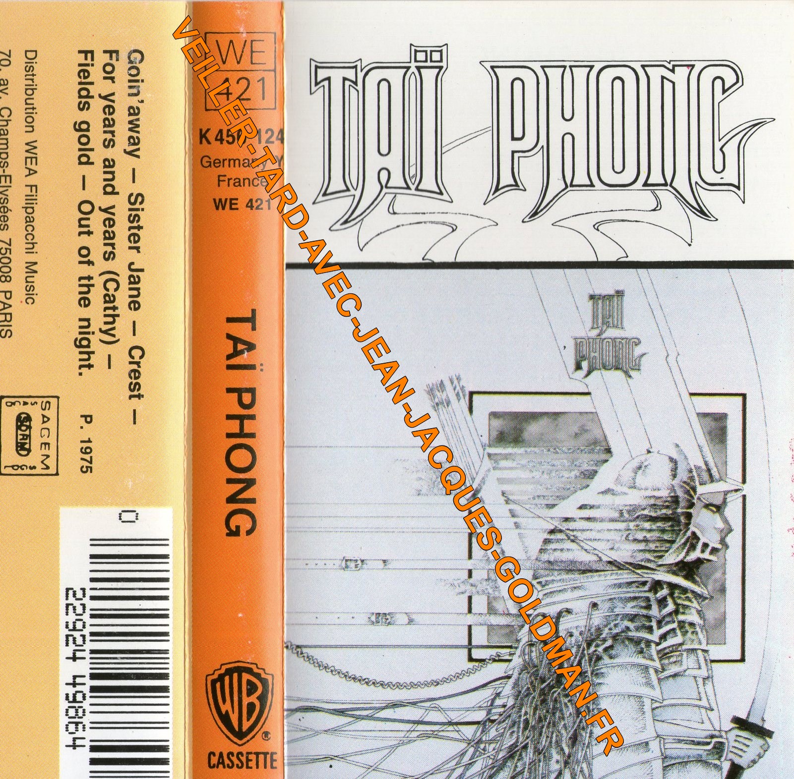RECTO / GOIN'AWAY - SISTER JANE - CREST - FOR YEARS AND YEARS (CATHY) - FIELDS GOLD - OUT OF THE NIGHT / P. 1975 / SACEM - SACD - SDRM - SGDL - DISTRIBUTION WEA FILLIPACCHI MUSIC 70, AV. DES CHAMPS ELYSEES 75008 PARIS - AVEC CODE BARRE - 0 22924 49864 / WE 421 - K 456 124 - GERMANY Y FRANCE WE 421 - TAÏ PHONG - WBR - CASSETTE / TAI PHONG - SAMORAÏ - POCHETTE NOIR ET BLANC